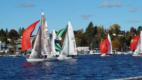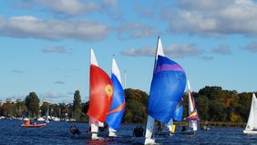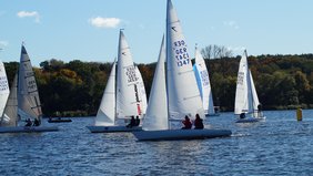 Hierfür hatten 13 Mannschaften gemeldet, die bei erfreulich sinnig gewordenem Herbstwetter am Samstag pünktlich 12 Uhr an den Start gingen. Gesegelt wurden auf der Havel vor Schildhorn drei Läufe mit kühlem Wind von 2-4 Bft, in Böen auch mal 5. Besonders durch seine Richtungswechsel sorgte er auch für wechselhafte Ergebnisse und somit am Abend für genügend Klönschnackgrundlage beim Buffet „Hamburger-do-yourself".
